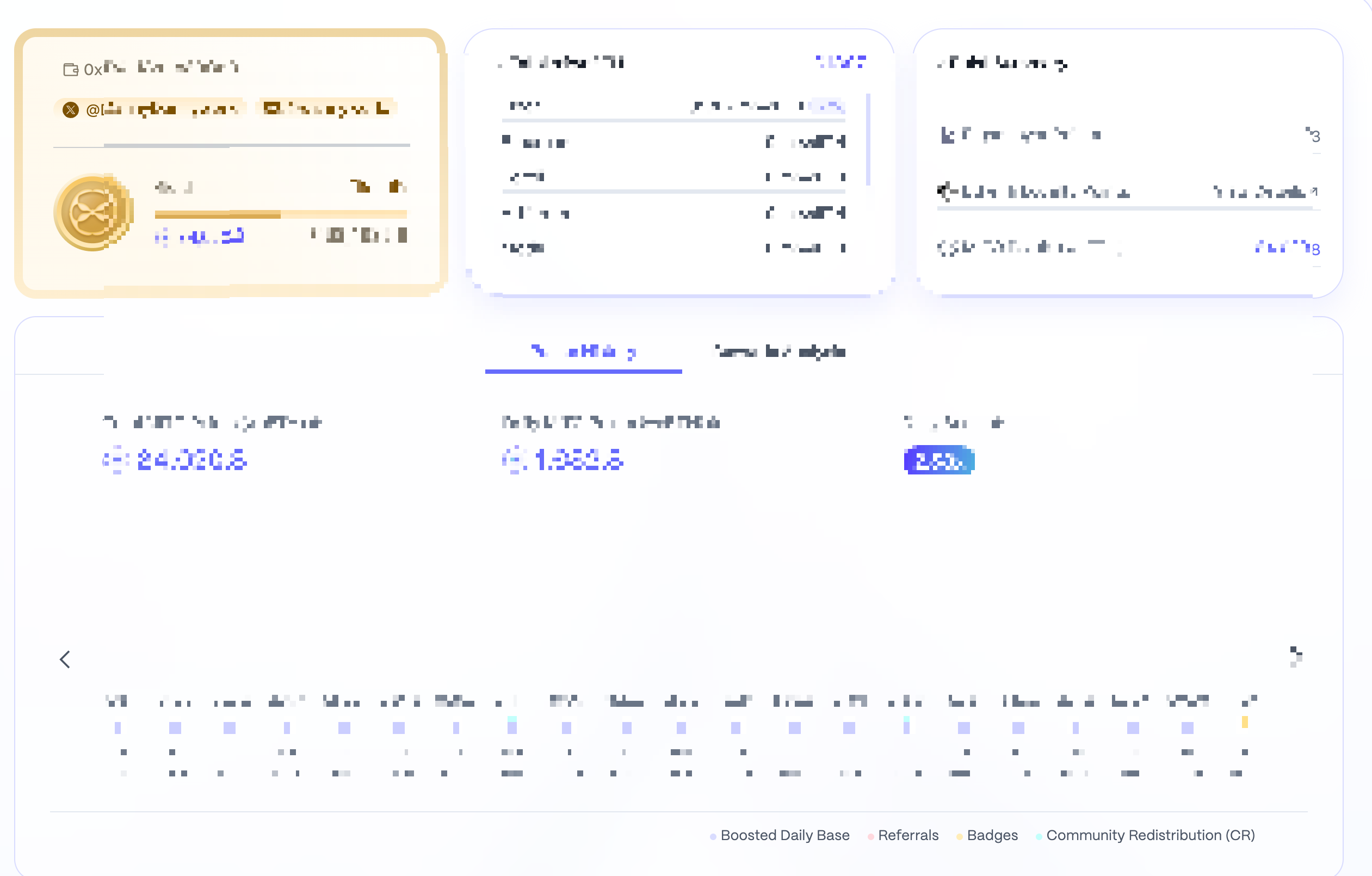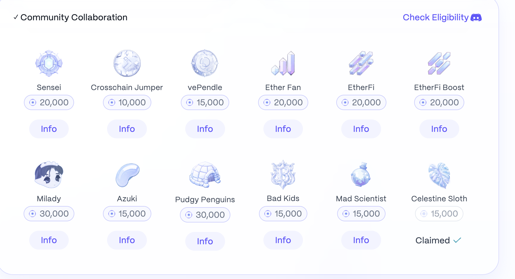 - 이더 자산을 예치, 레이어2 자산을 예치, 주로 이더리움 자산을 재예치 하여 추가 포인트 파밍 가능.