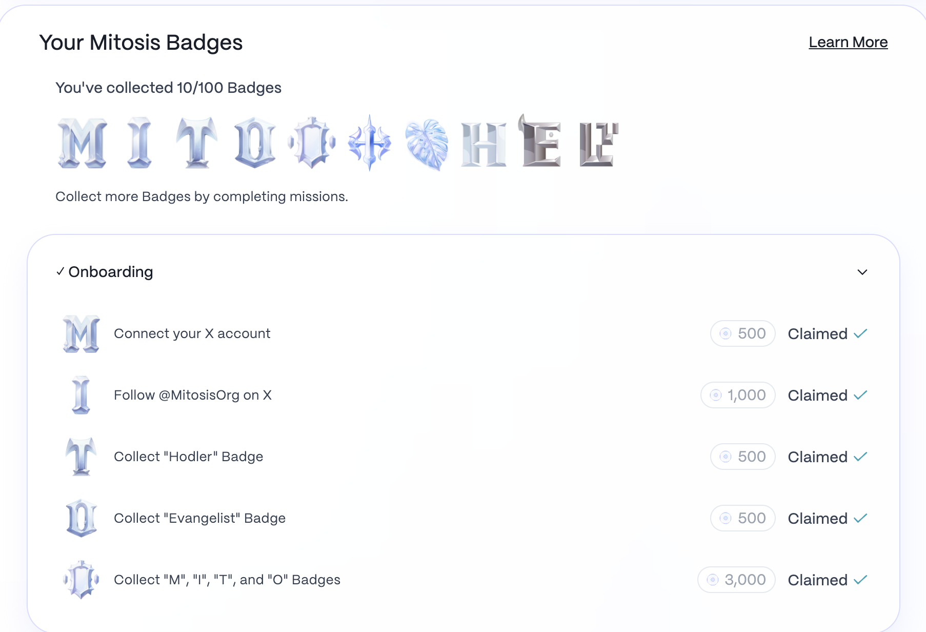 3. 추가 미션 수행 및 Mitosis 포인트 확인