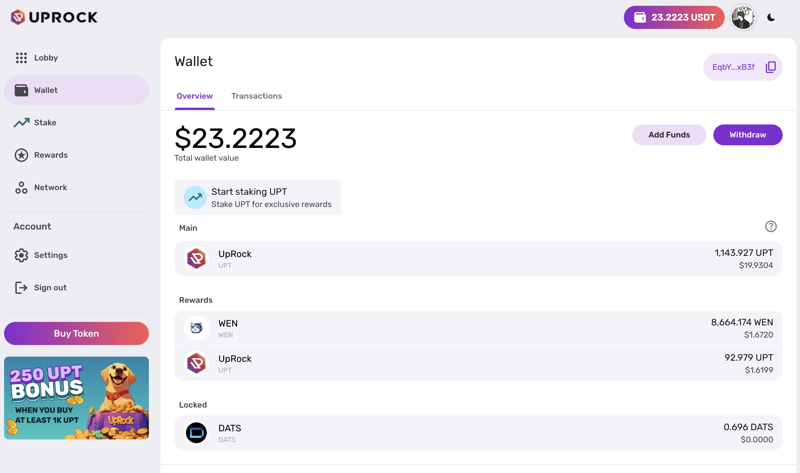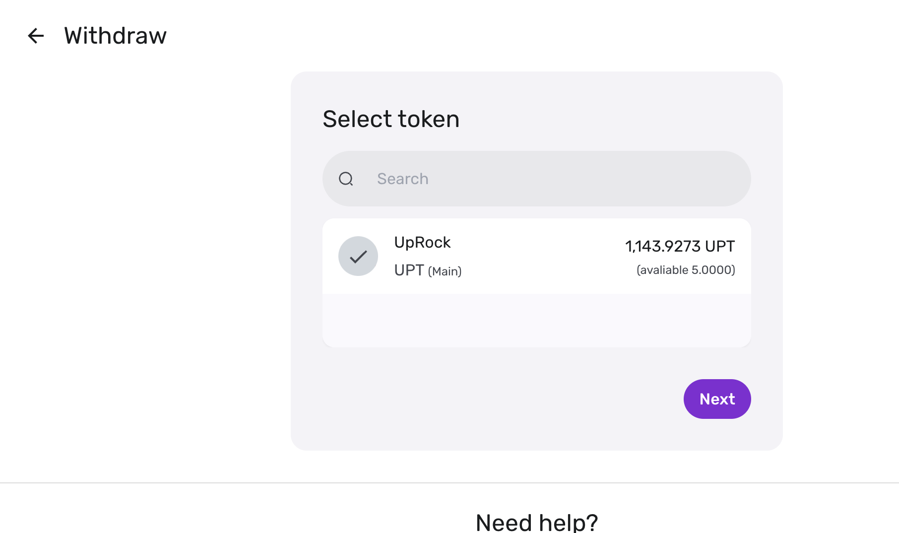 - Withdraw를 눌러줍니다. (UpRock 토큰을 선택합니다.)