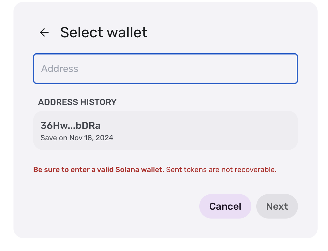 - 본인의 솔라나 지갑 주소를 입력합니다.
