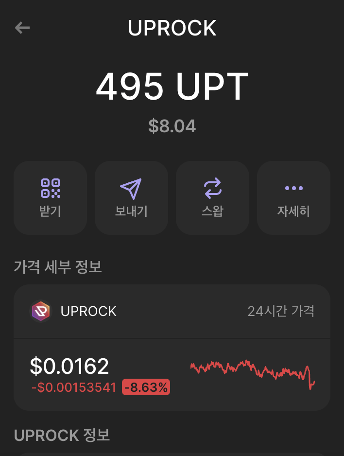 - 출금 후 지갑을 보면 이렇게 UPT가 들어와 있습니다.