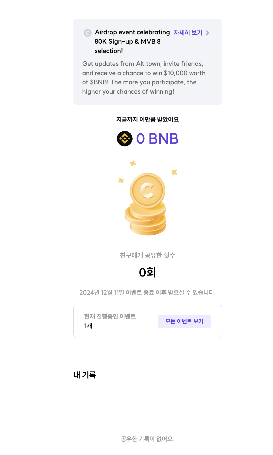 추후에 당첨되면 BNB가 표시되고, 이걸 바이낸스 거래소나 개인지갑으로 보낼수 있습니다.
