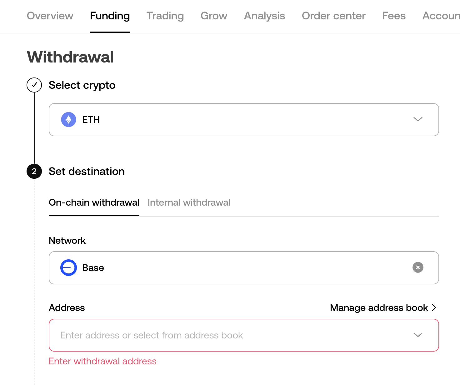 1) ETH 송금(네트워크를 반드시 Base로 선택하세요!!)