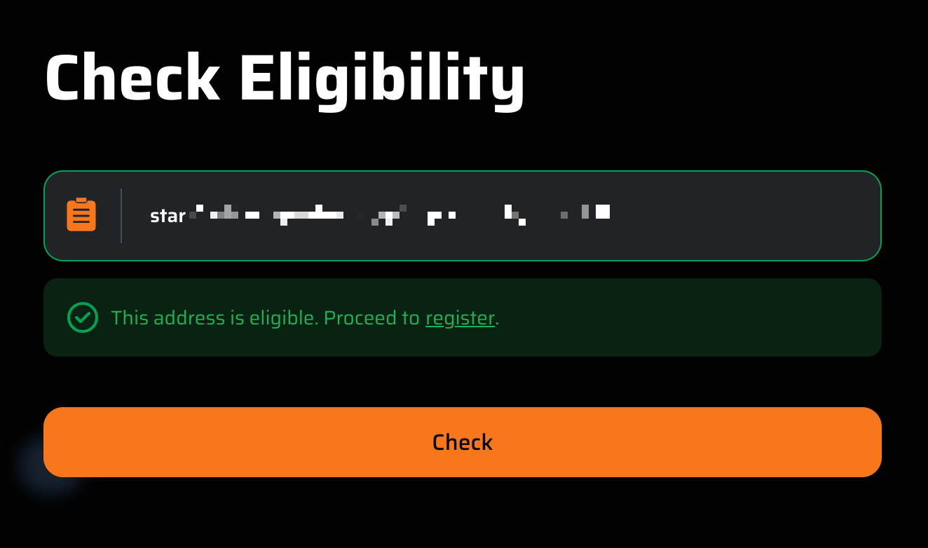 - ATOM 스테이커는 ATOM 주소 넣고 체크하면 되고, NFT 홀더는 해당 주소 넣고 체크하면 됩니다.(스타게이드, 비트코인 주소 등)