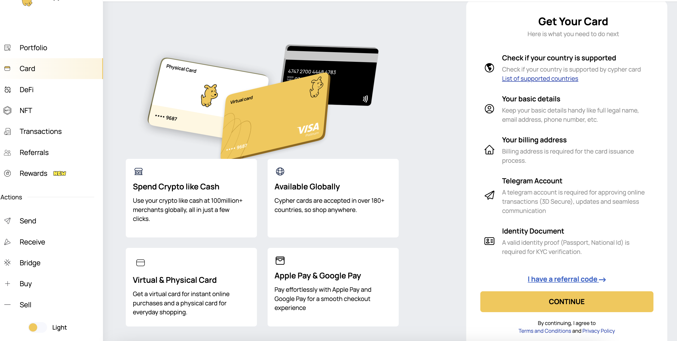 - 이름 및 이메일, 텔래그램 승인, KYC, 그리고 카드를 얻게 됩니다.