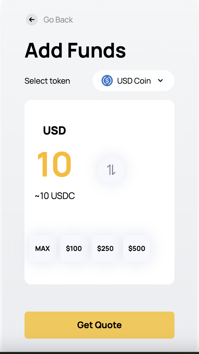 - 여기까지 성공해서 지갑에 소액의 이더와 USDC가 입금되었다면 카드로 입금하면 됩니다.