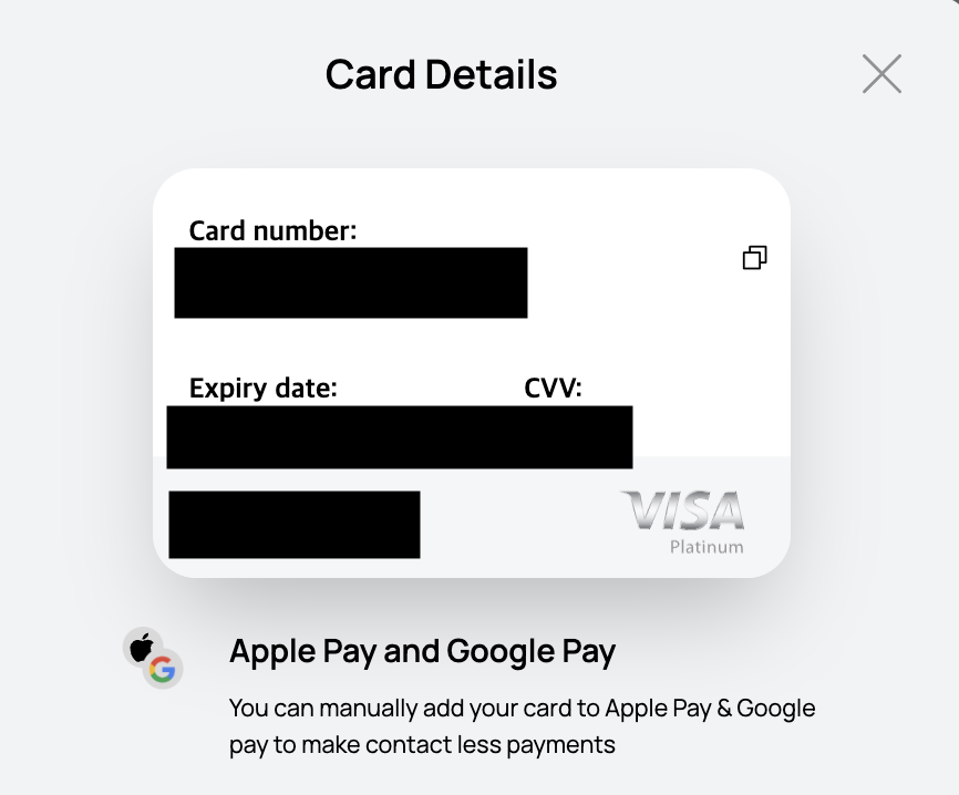 - Reveal Card 메뉴 클릭 후 텔래그램에서 인증하고 나면 아래와 같이 카드 정보가 나옵니다.