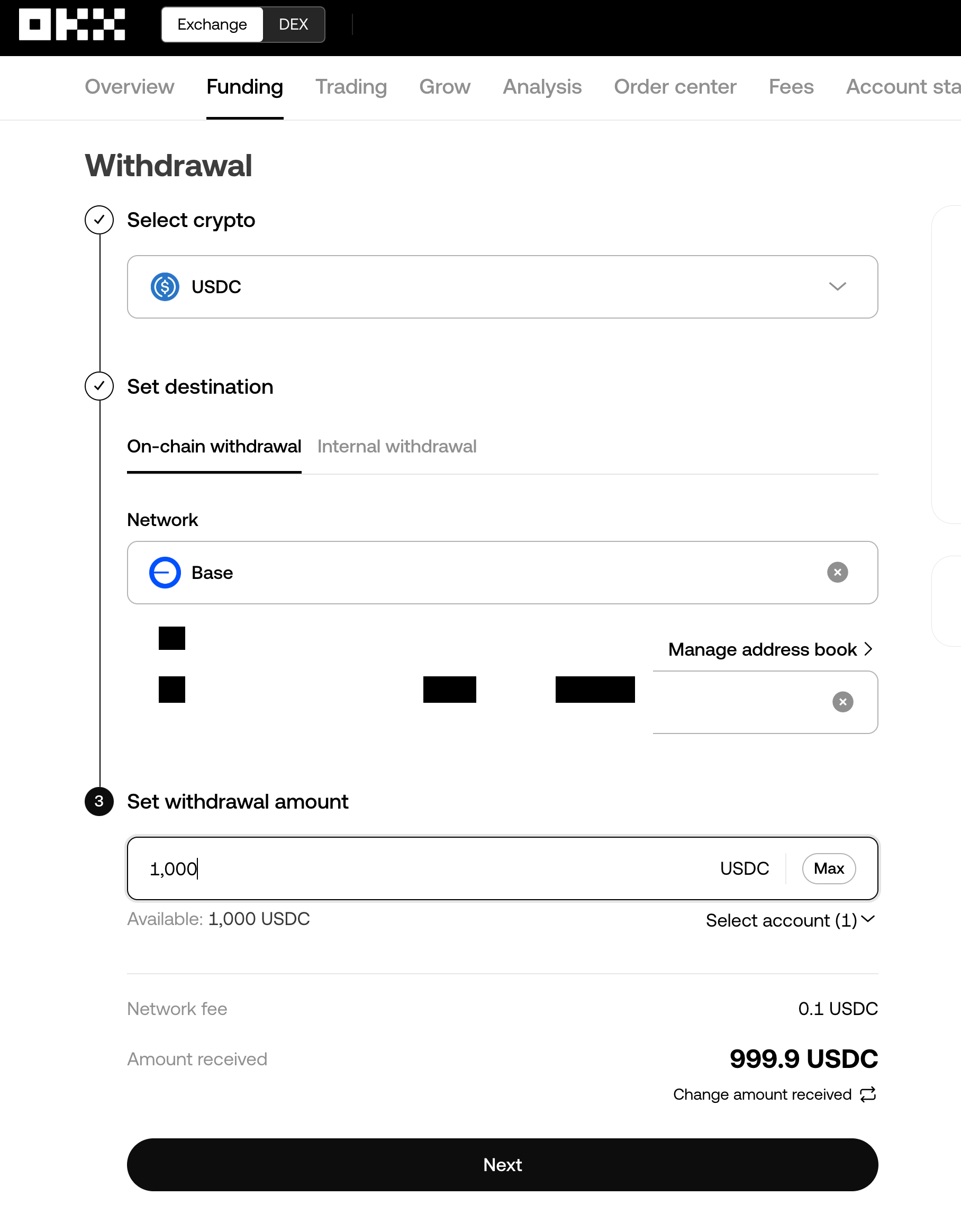 - Base에서 받은 USDC를 다시 거래소로 보내면 됩니다.