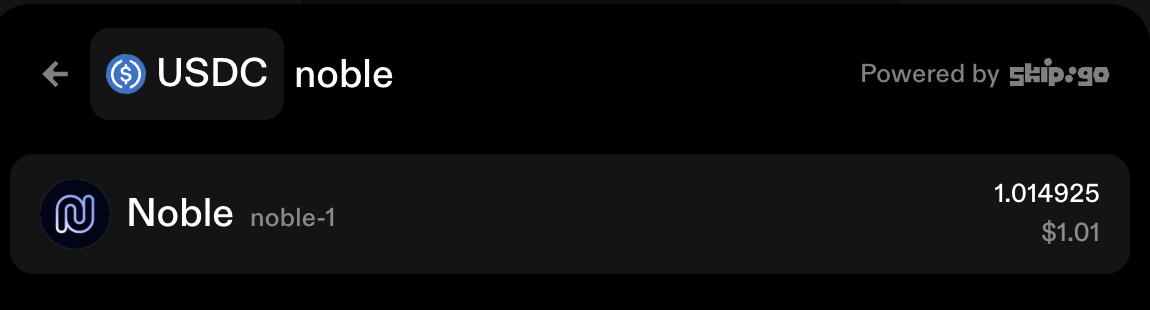 - USDC를 Noble로 보낸 이후 Base로 보내는 방법으로 설명하겠습니다.(다른 방법들도 가능)