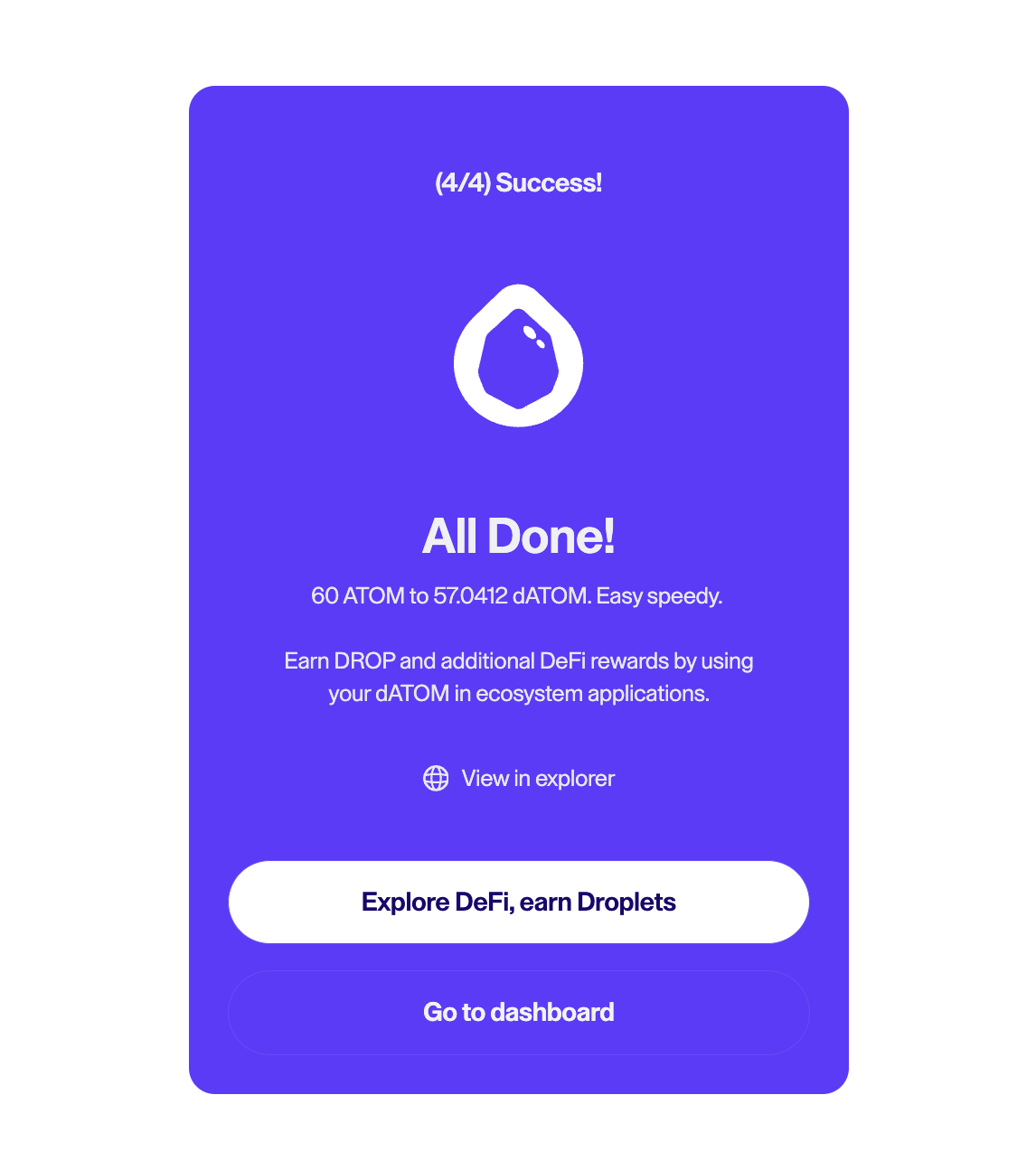 1. atom을 datom으로 변환하여 스테이킹 이자 받고, 추가로 drop 포인트 1배수 얻기(추후 drop 에어드랍)