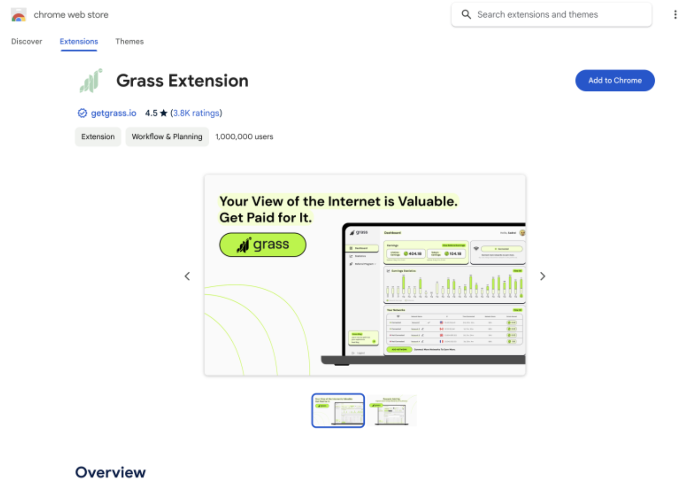 3. 아래와 같이 Grass 확장프로그램에서 Add to Chrome하여 설치해줍니다.