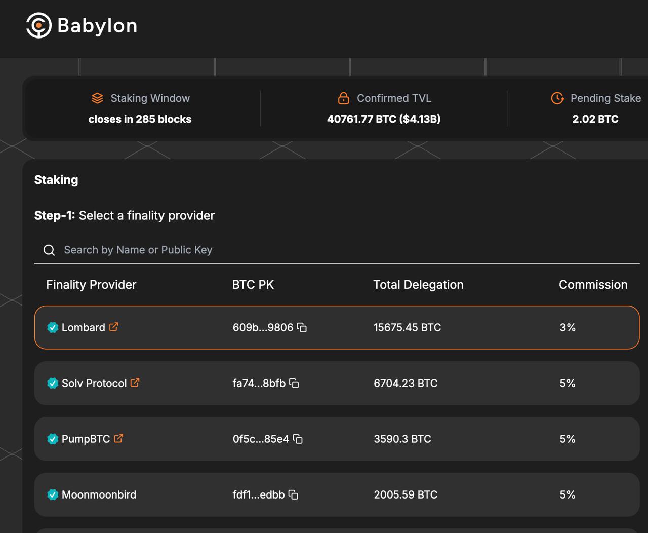 - 현재 바벨론에 40761개의 BTC가 스테이킹 되어 있습니다. ($4.13B) 이 중 최상위 프로바이더가 롬바드입니다.(15675BTC)