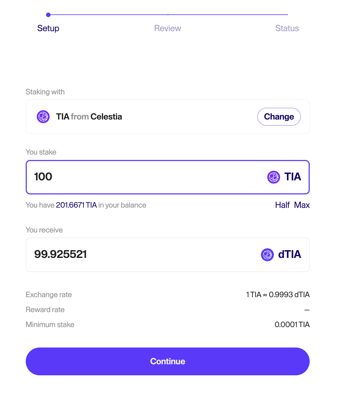 (dTIA는 스테이킹 된 TIA와 동일하면서 언제든지 dex에서 dTIA를 즉각적으로 사고 팔수 있습니다.)