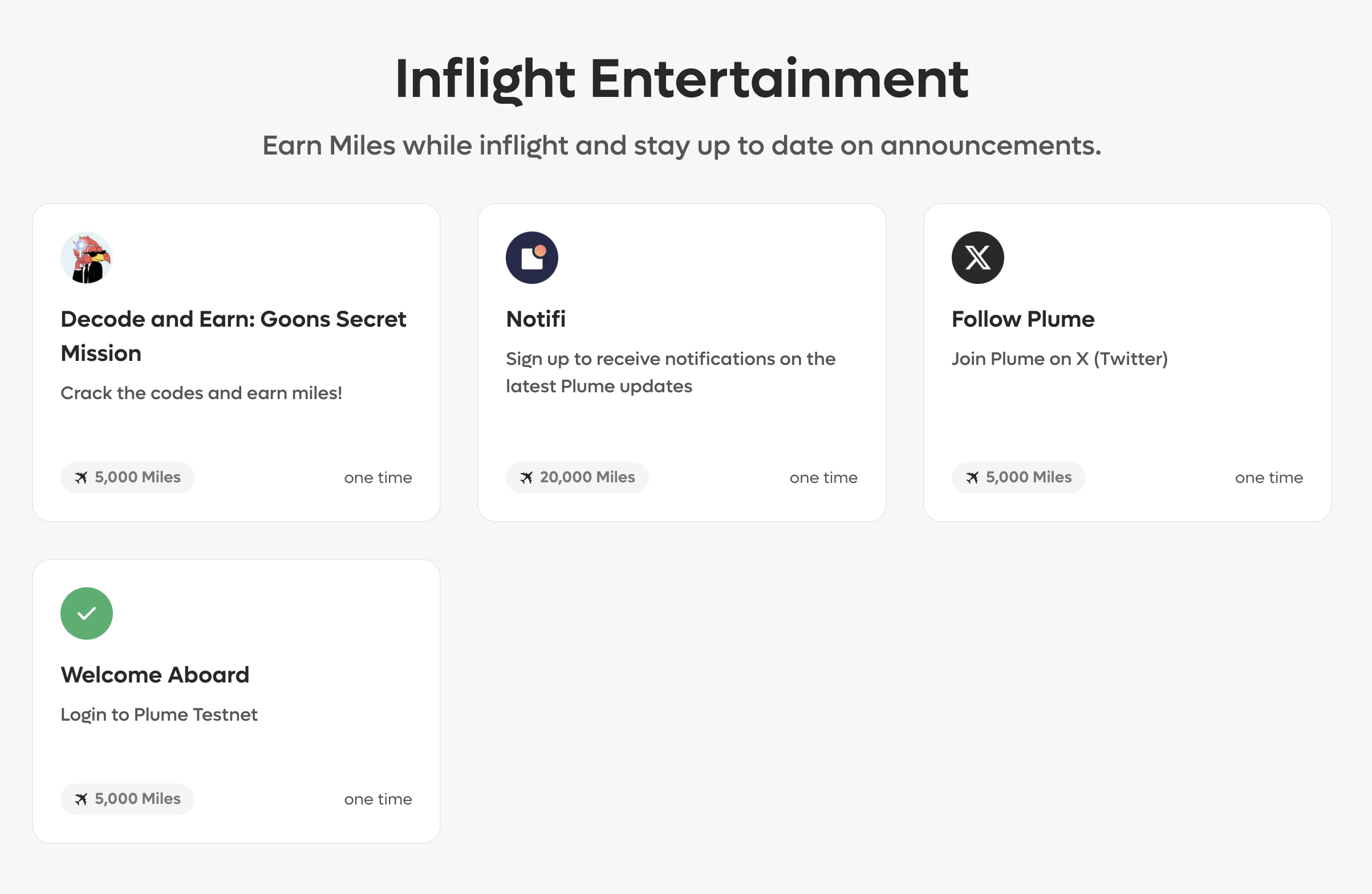 Plume Testnet: Dive into the Plume ecosystem! Earn Plume Miles by completing daily tasks, engage with the community, and mint exclusive NFTs. Join the adventure today!