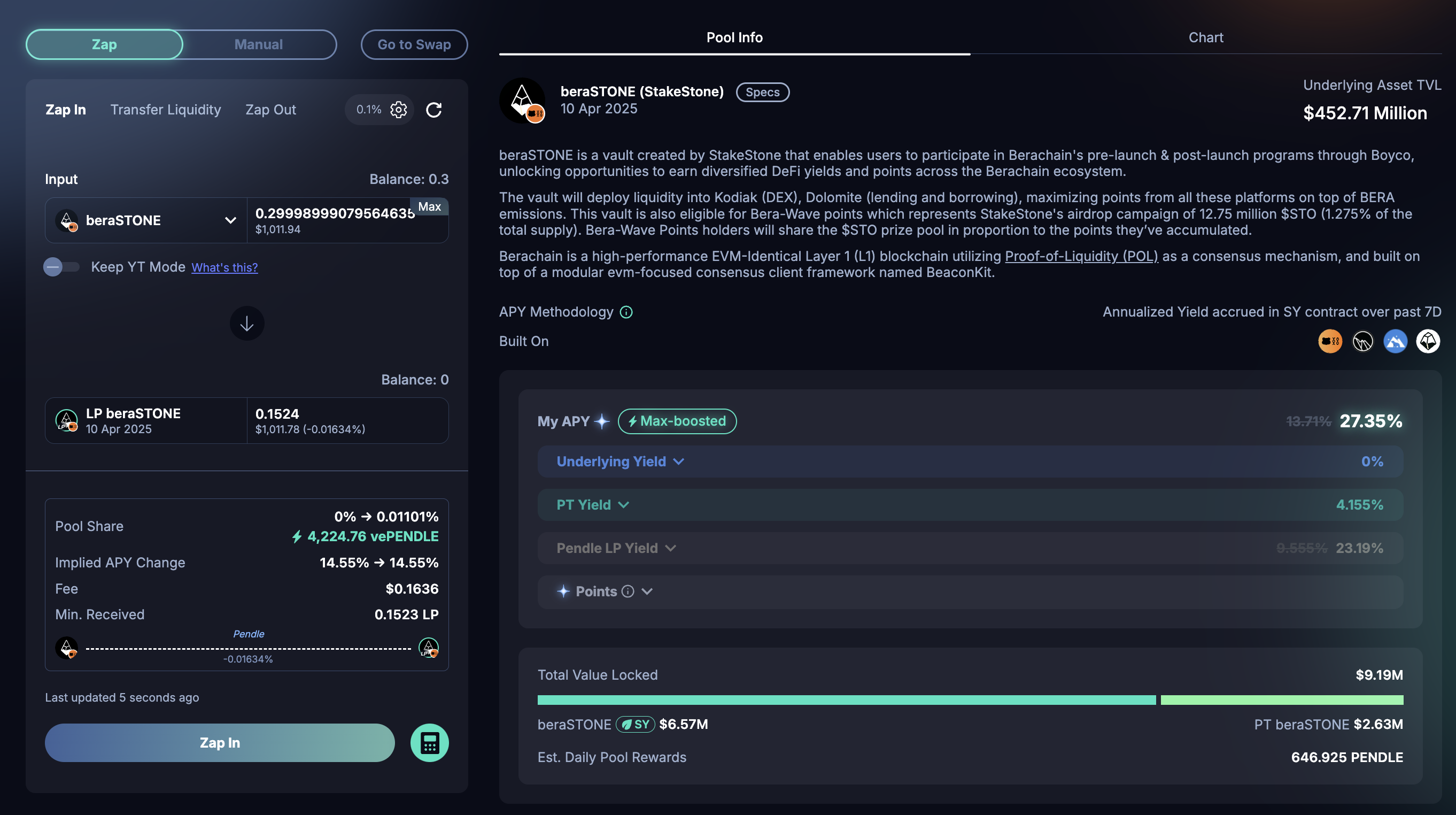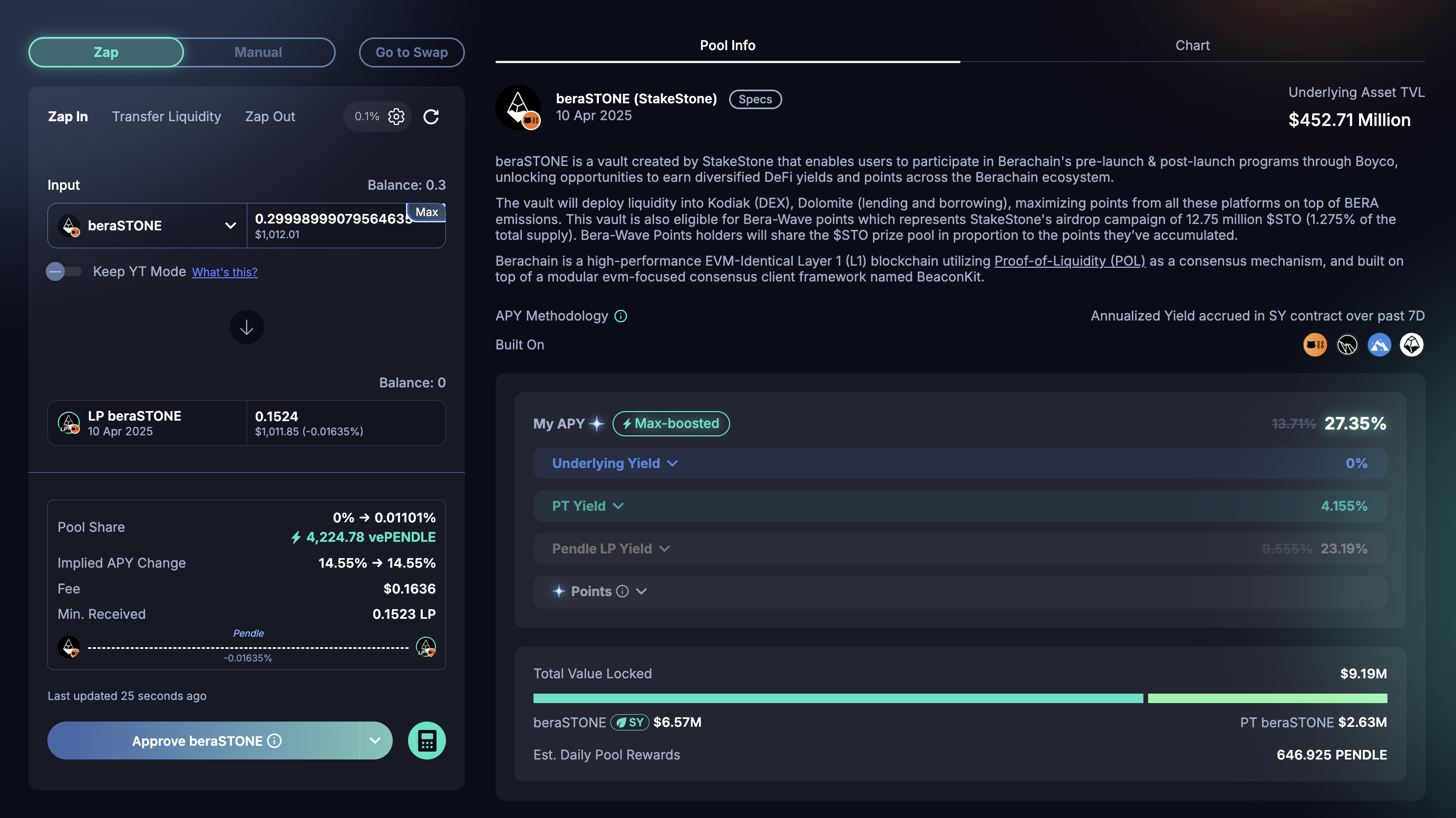 2. Pendle에서 beraStone 활용하여 포인트 5배수로 늘리기