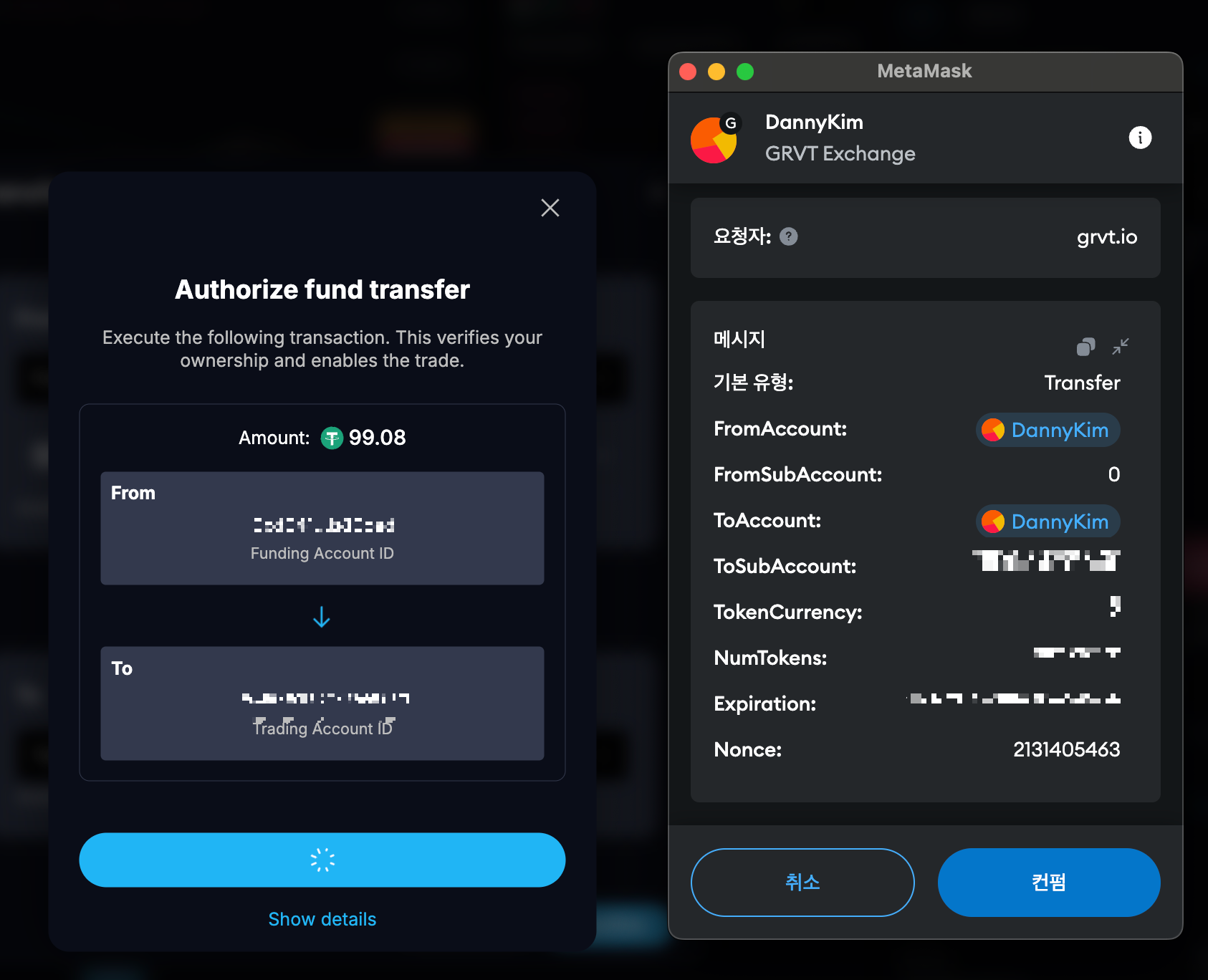 - funding account에서 trasnfer