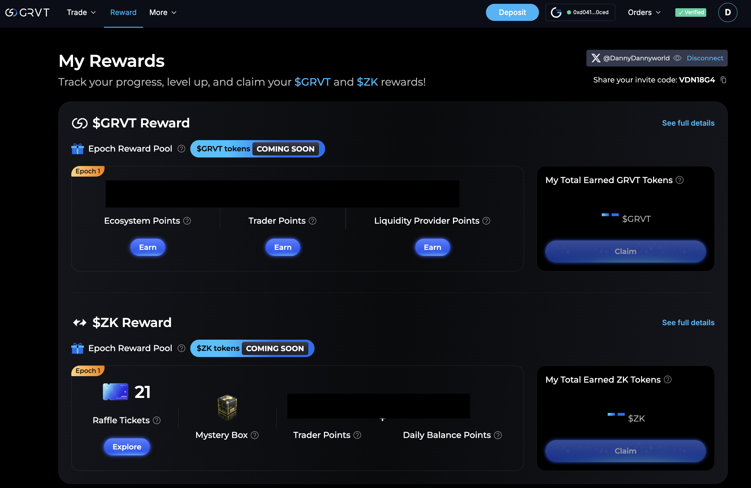 - 트레이딩 볼륨에 따라서 GRVT와 ZK를 에어드랍 받습니다!