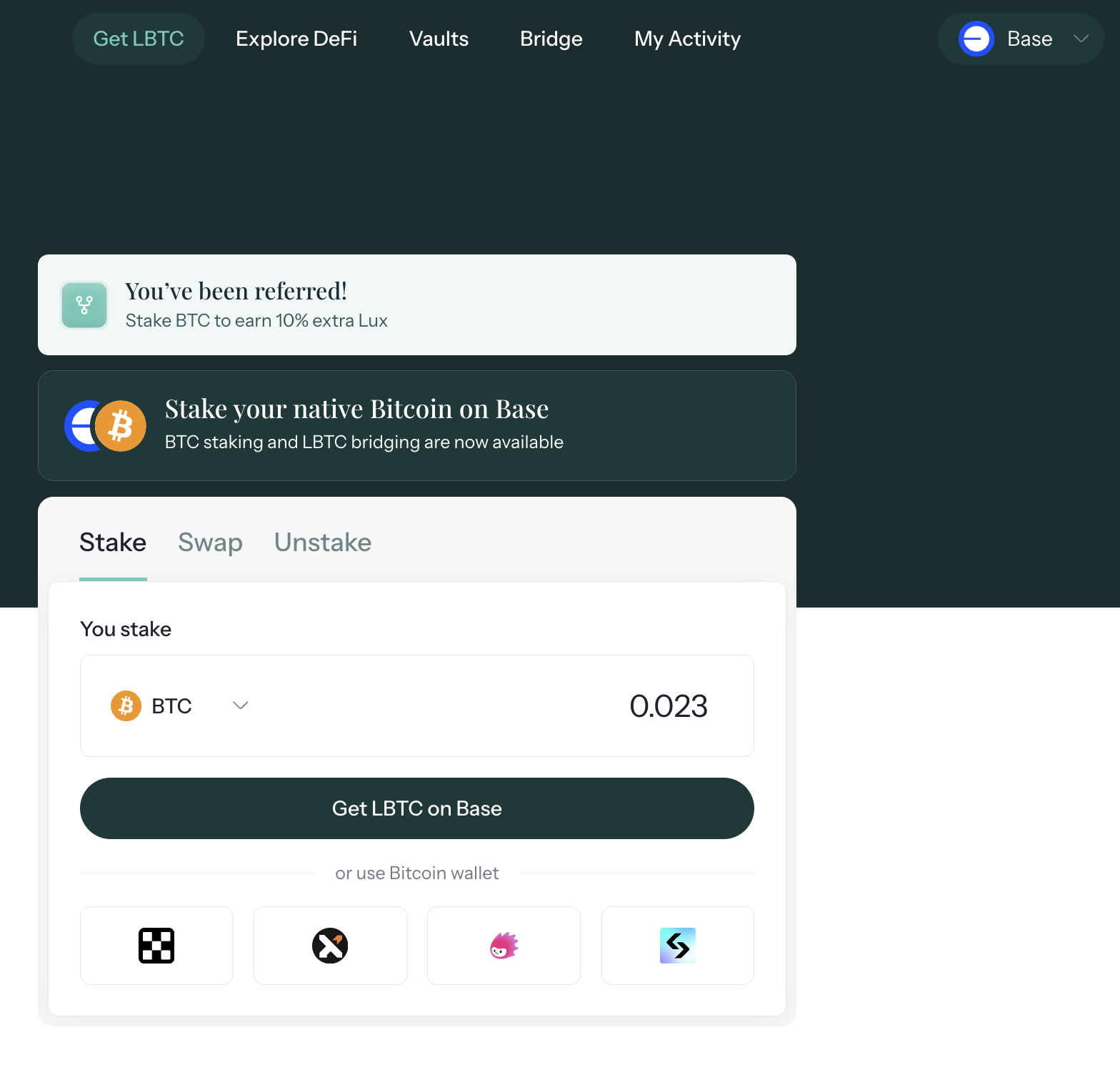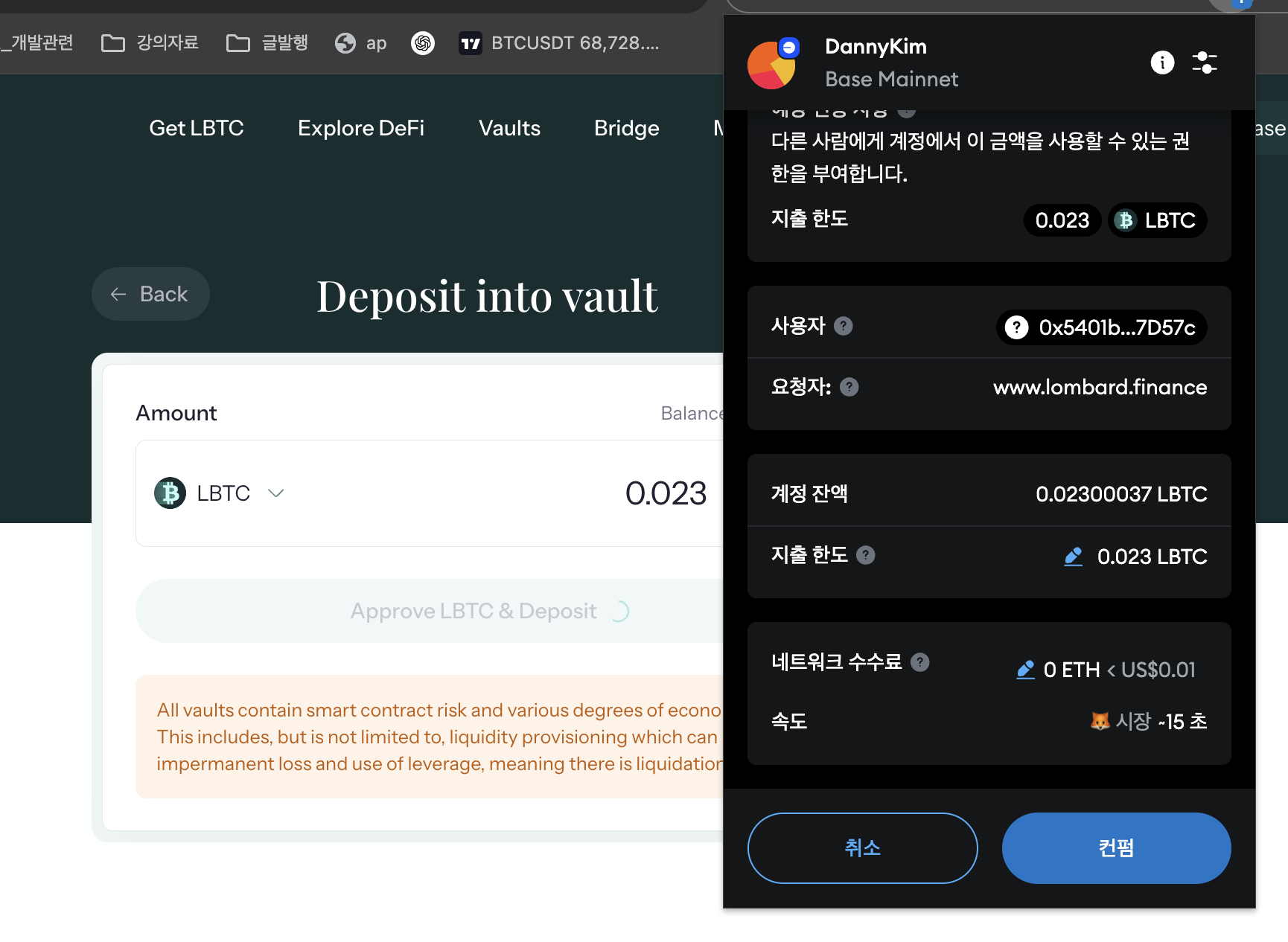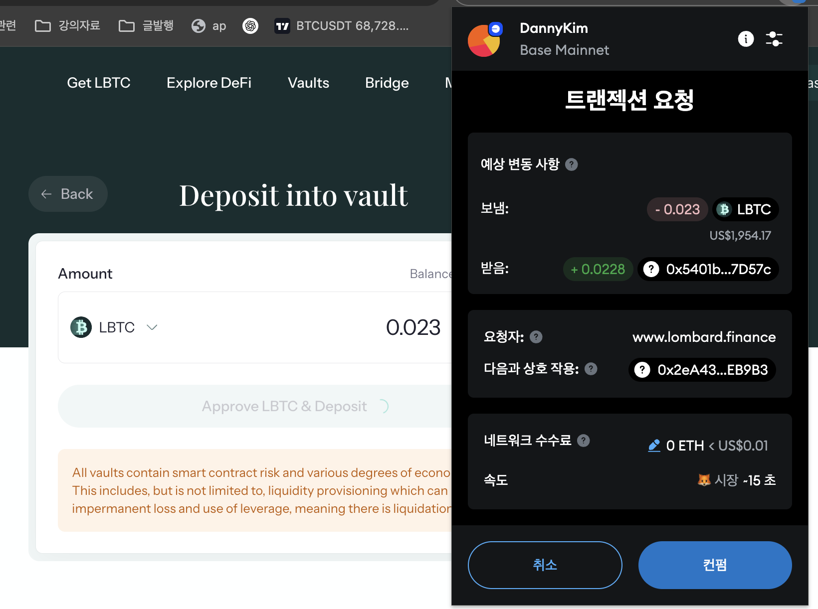 2. 롬바드 디파이 vault에 베이스 체인으로 비트코인 스테이킹 하기