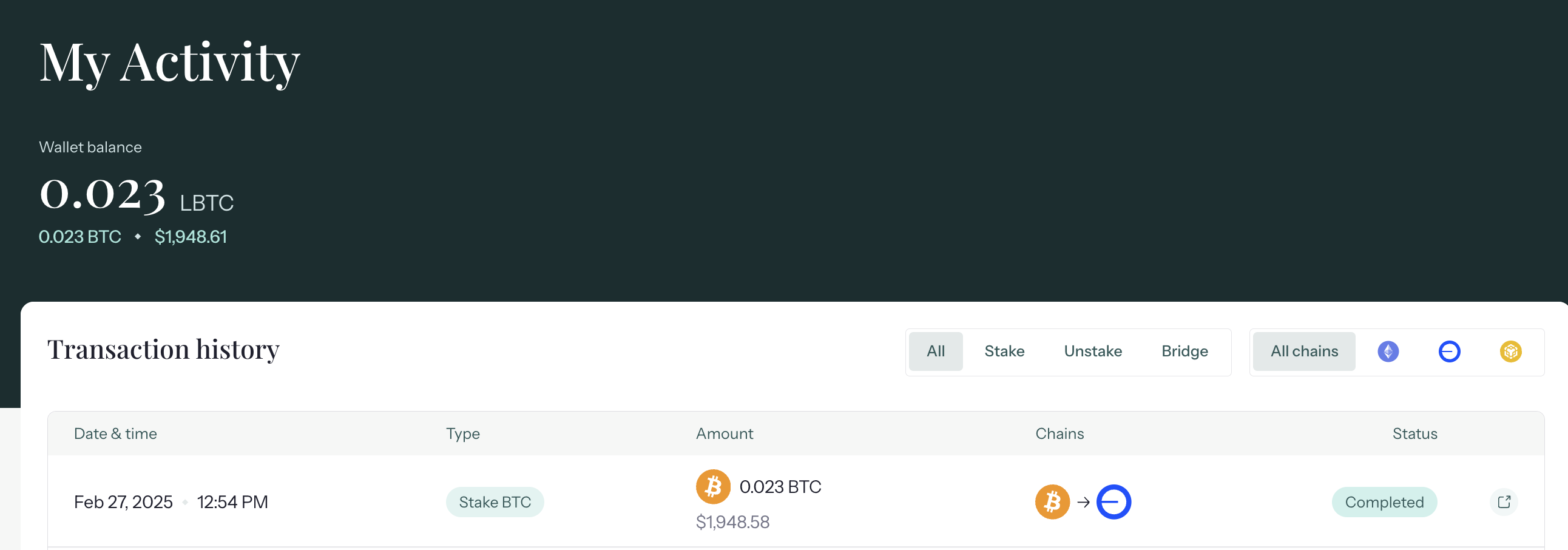 - 최종 완료되면 아래와 같이 LBTCv 자산으로 표시됩니다.
