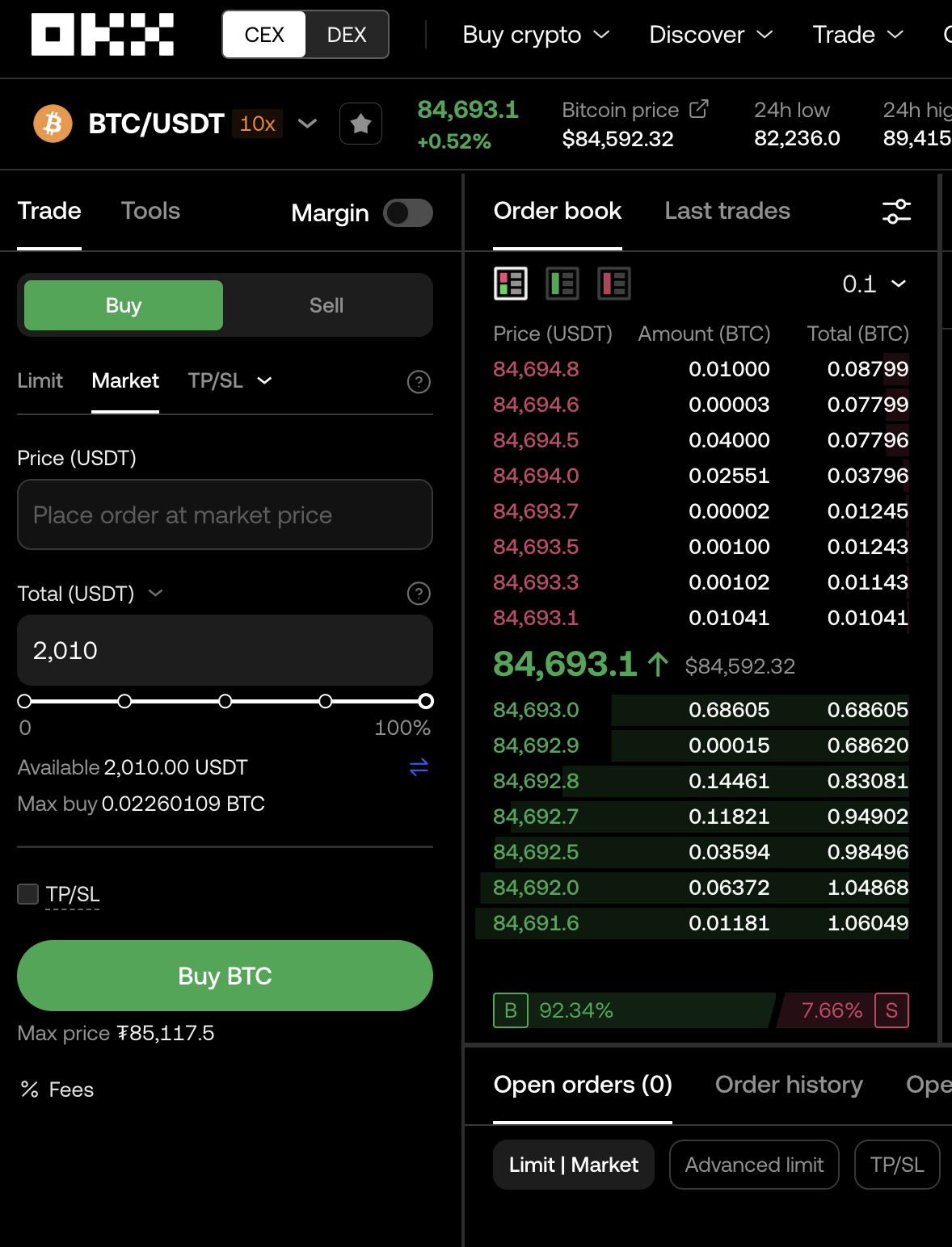 - OKX에서 비트코인을 매수합니다. (수수료 포함해서 $2010으로 비트 매수)