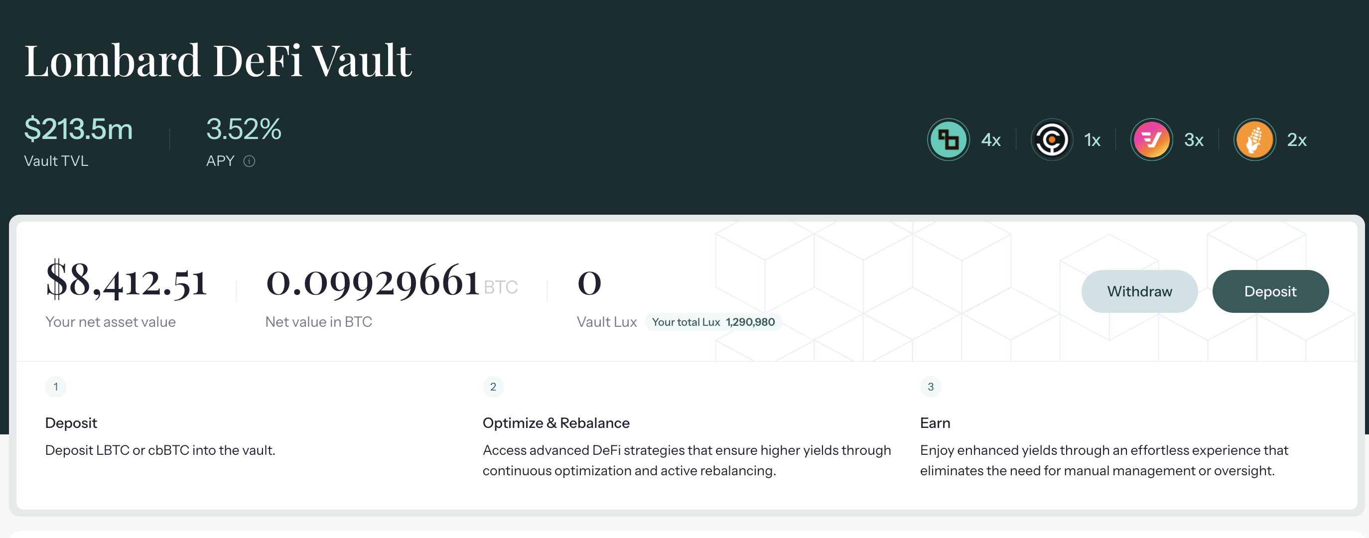- 마지막으로 Lombard Defi Vault에서 확인