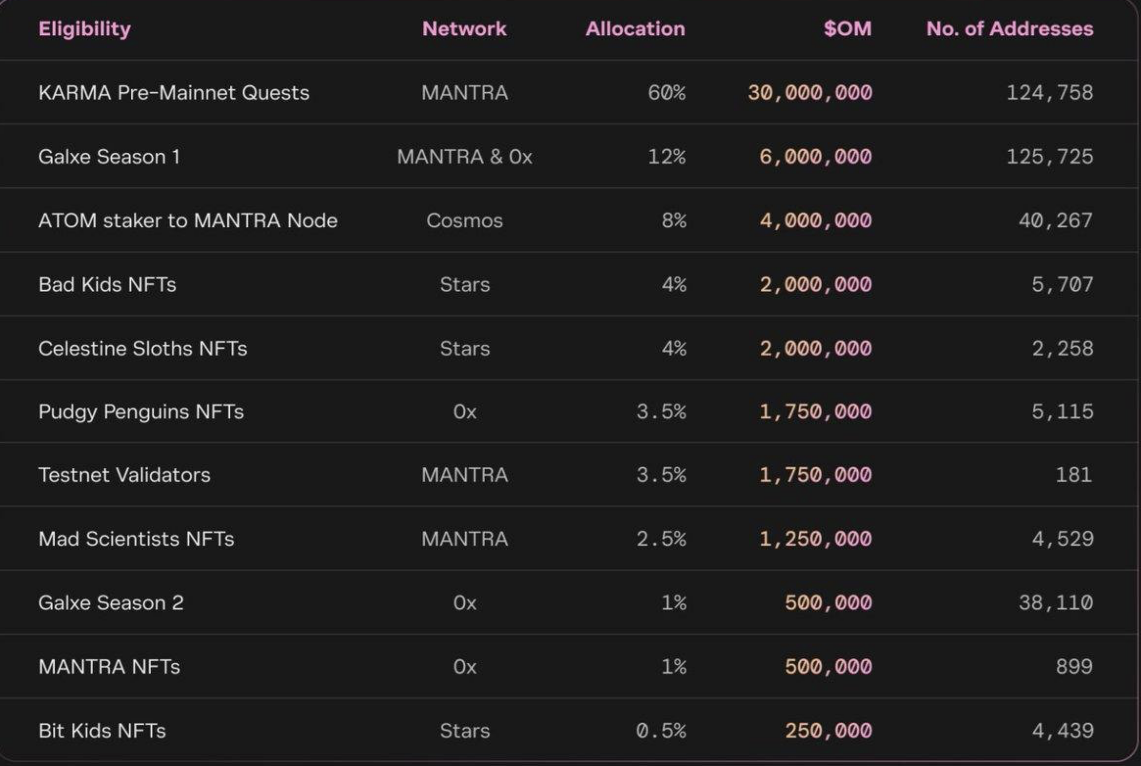 <Mantra 에어드랍 체크> Mantra(OM) 애드 체크해보세요! 코스모스 생태계에서 NFT 보유자들에게 에어드랍을 많이 해준것 같습니다. * 에어드랍 대상자들 정보를 댓글로 남겼습니다. 전 늘보 하나 있는