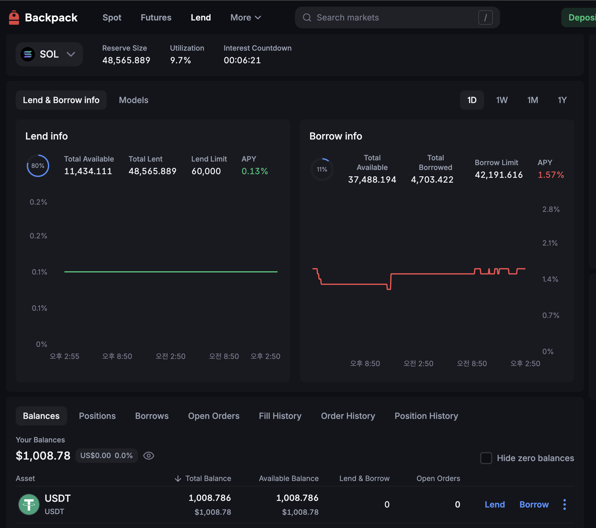 - 입금액 확인후 사용하지 않을 자금은 Lending해두고 트레이딩 할 금액만 남겨둡니다.