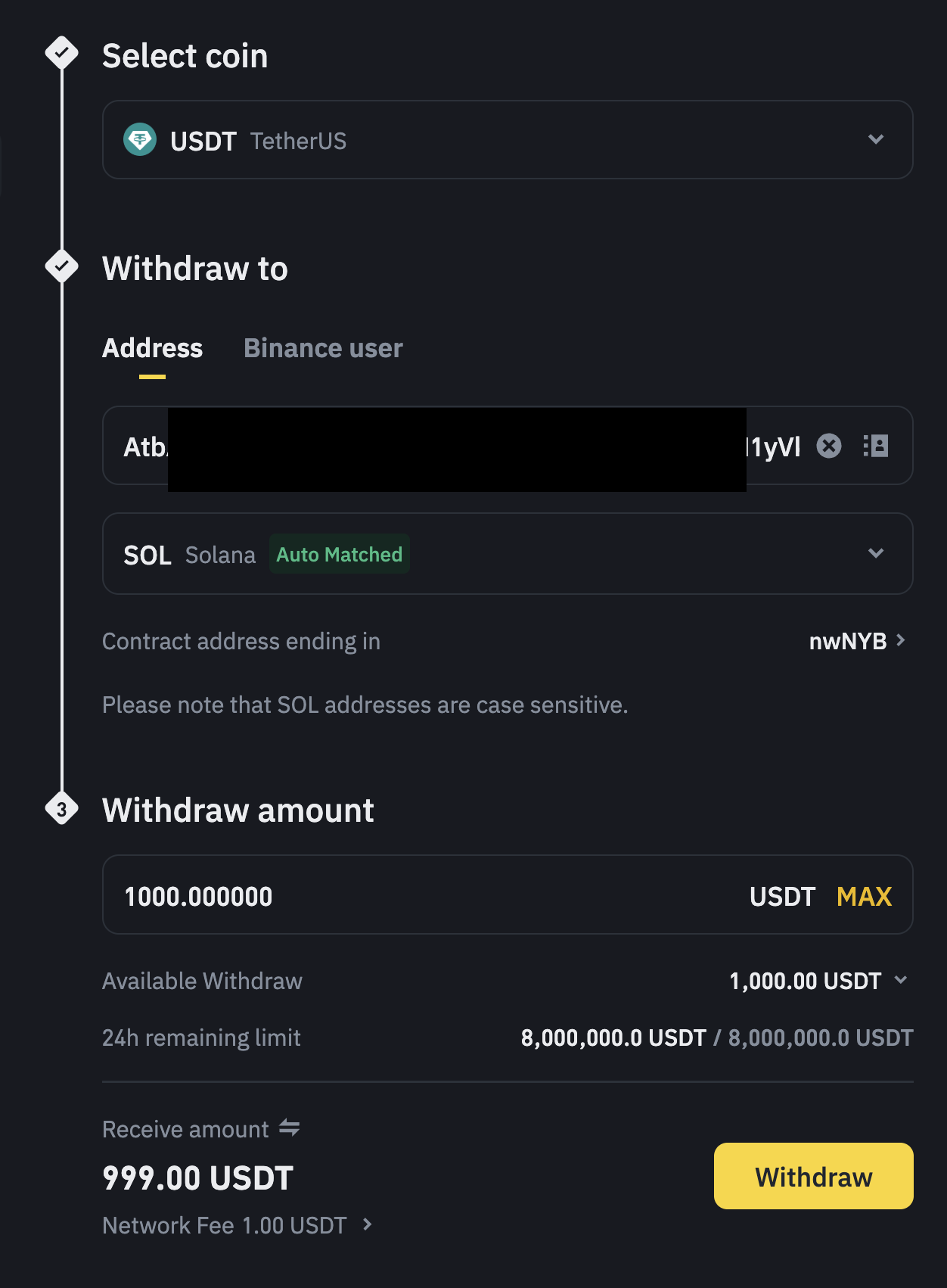 - (예)바이낸스에서 보낸다면 아래와 같이 보내면 됩니다.