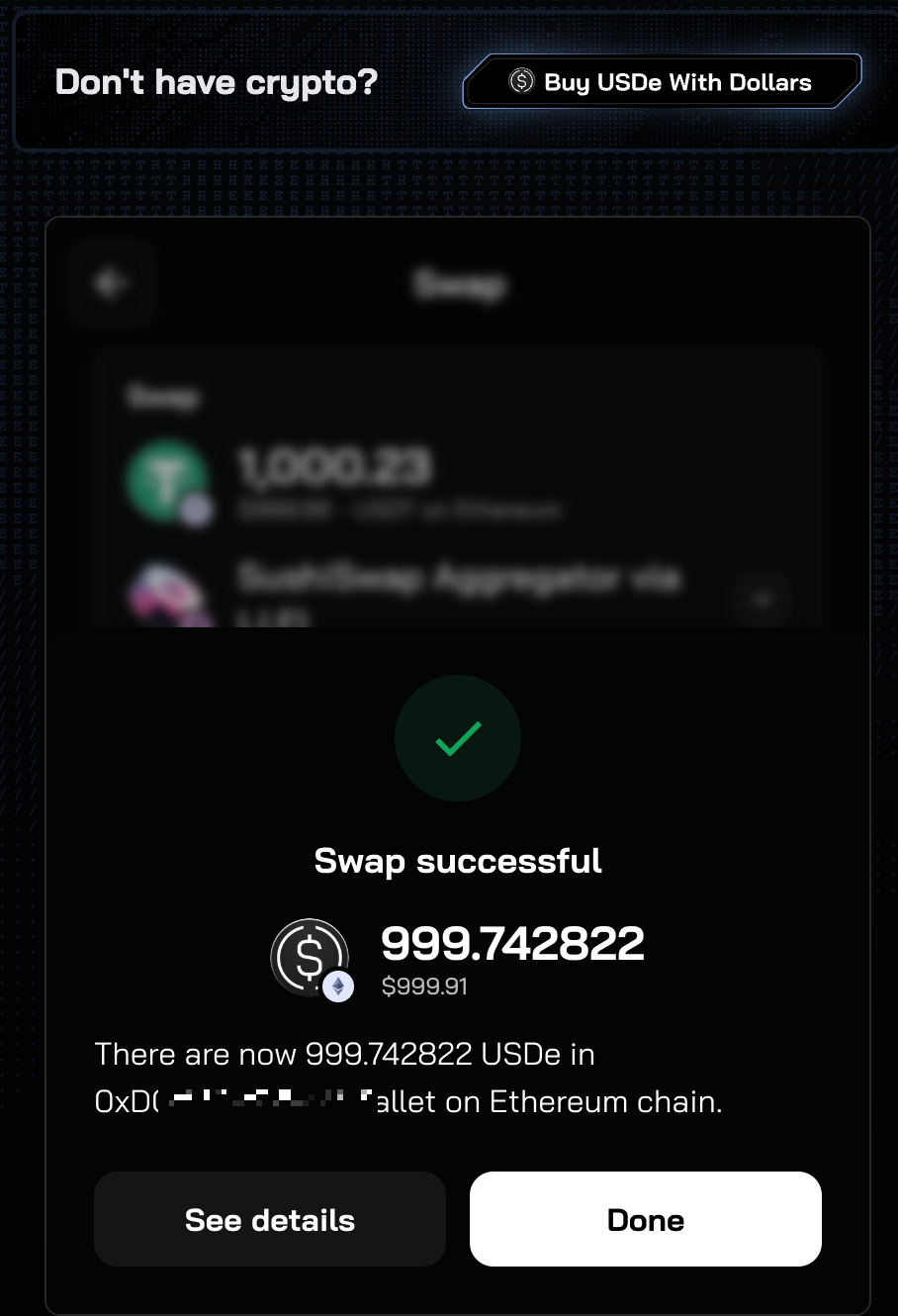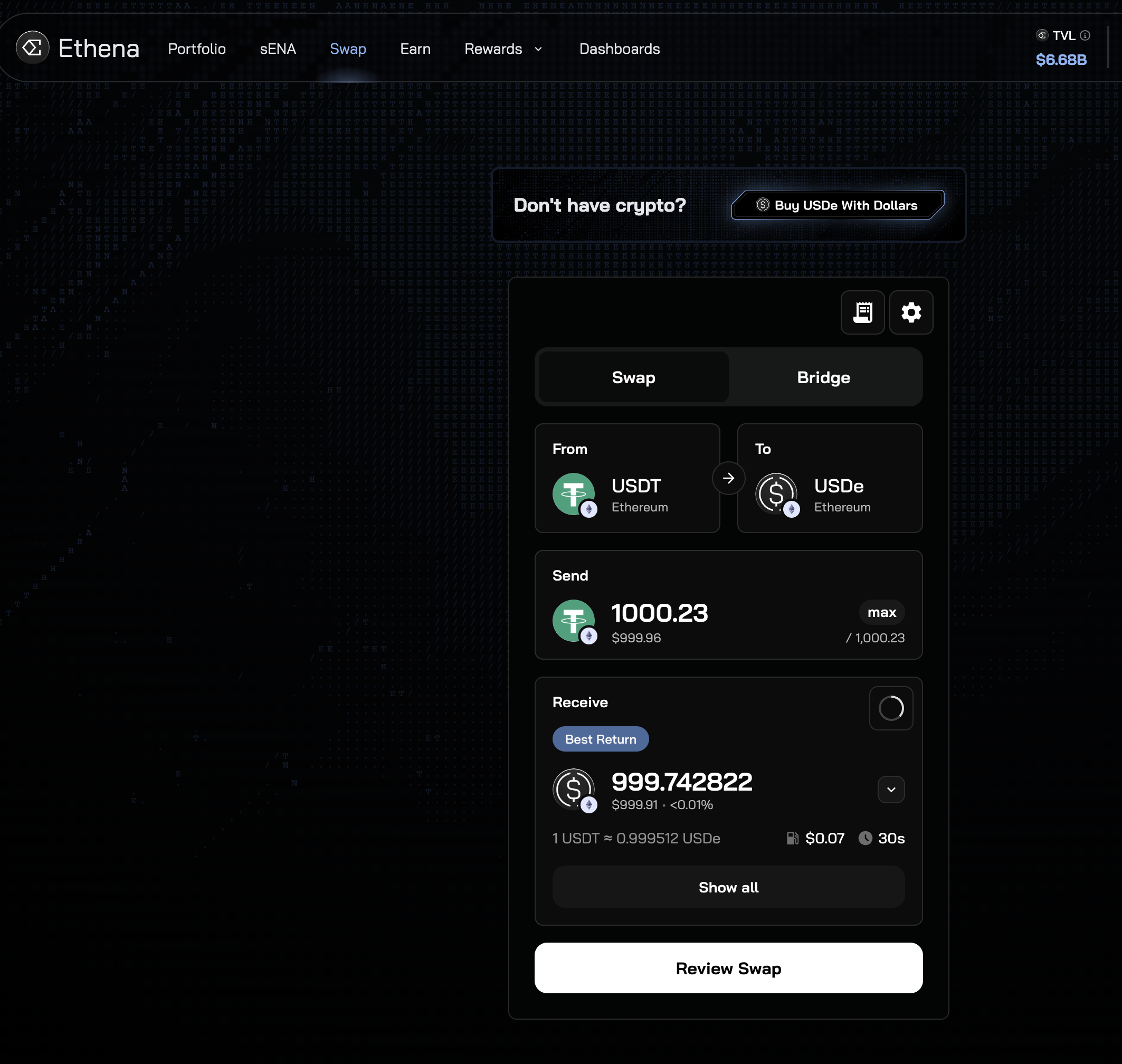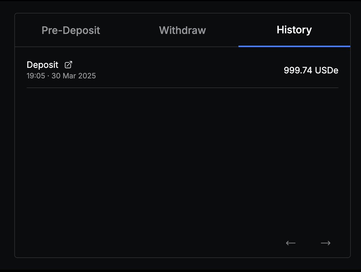 - 금액이 크다면 바이비트 거래소에서 USDE를 구매후 바로 보내서 예치해도 됨(바이비트에서 USDE전송 가스 수수료 $7정도 발생)