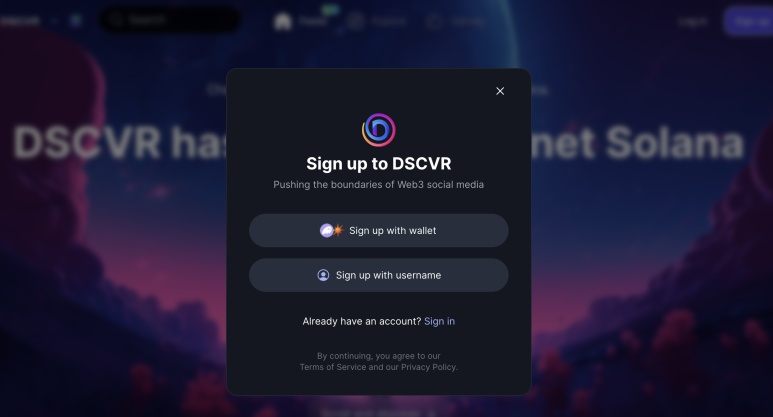 2. 페이지 제일 오른쪽 상단 Sign up 클릭 후 지갑 연결