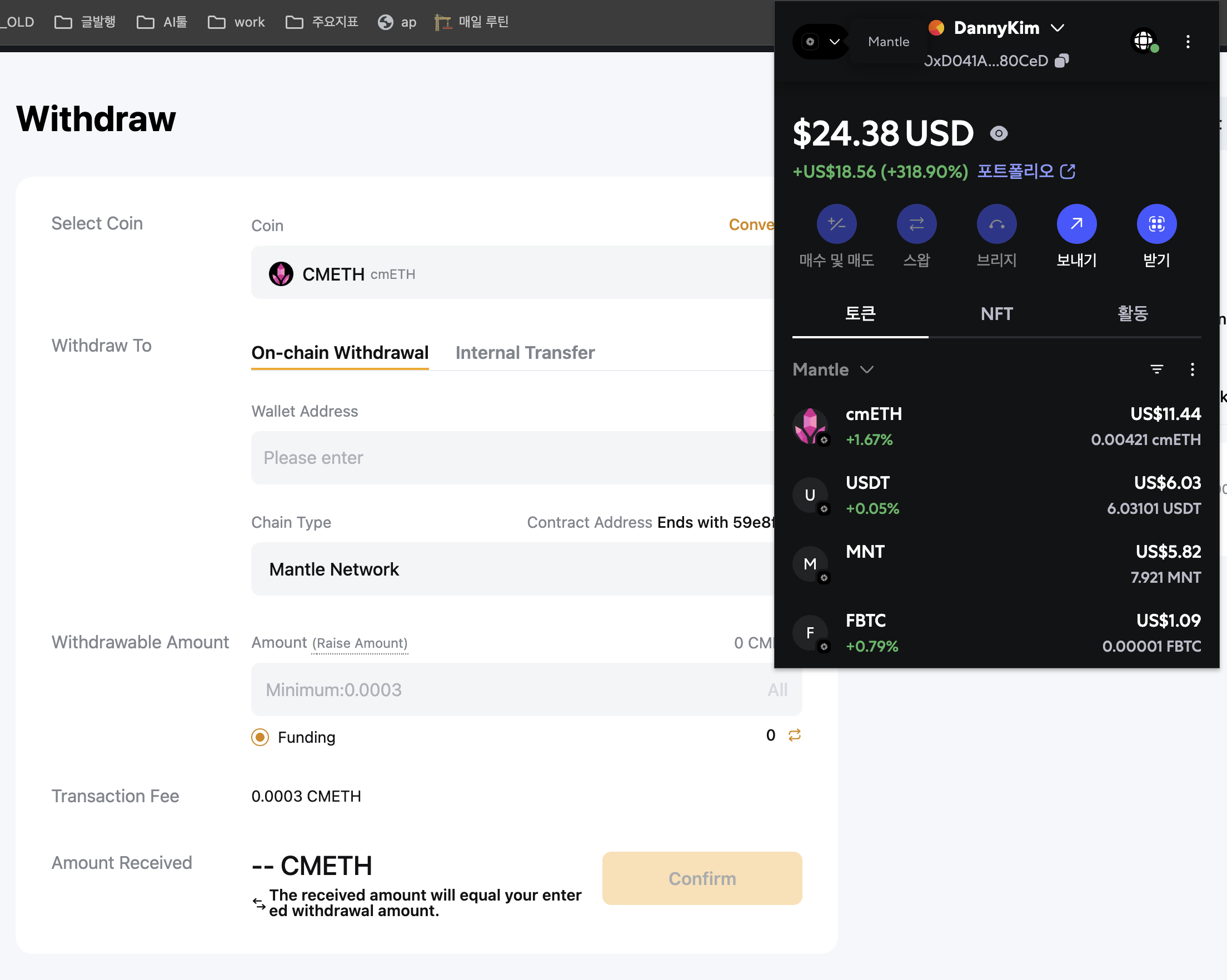 - 맨틀에 cmETH 필요 (바이빗에서 보낼 수 있음)