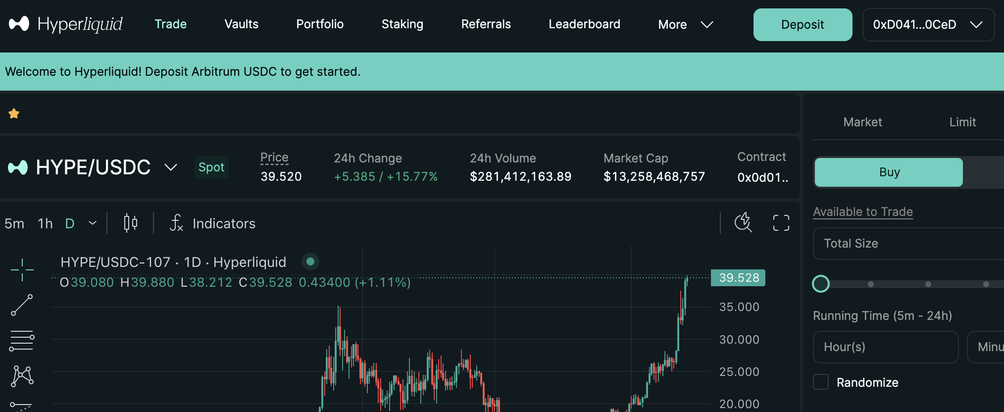 - 하이퍼리퀴드에 hype 필요 (아비트럼 usdc 10$ 보내거나, 비트겟에서 hype구매후 전송)