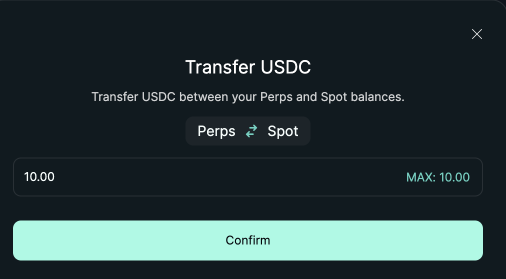 - 가스비로 사용할 hype 교환을 위해서 $10 usdc 입금