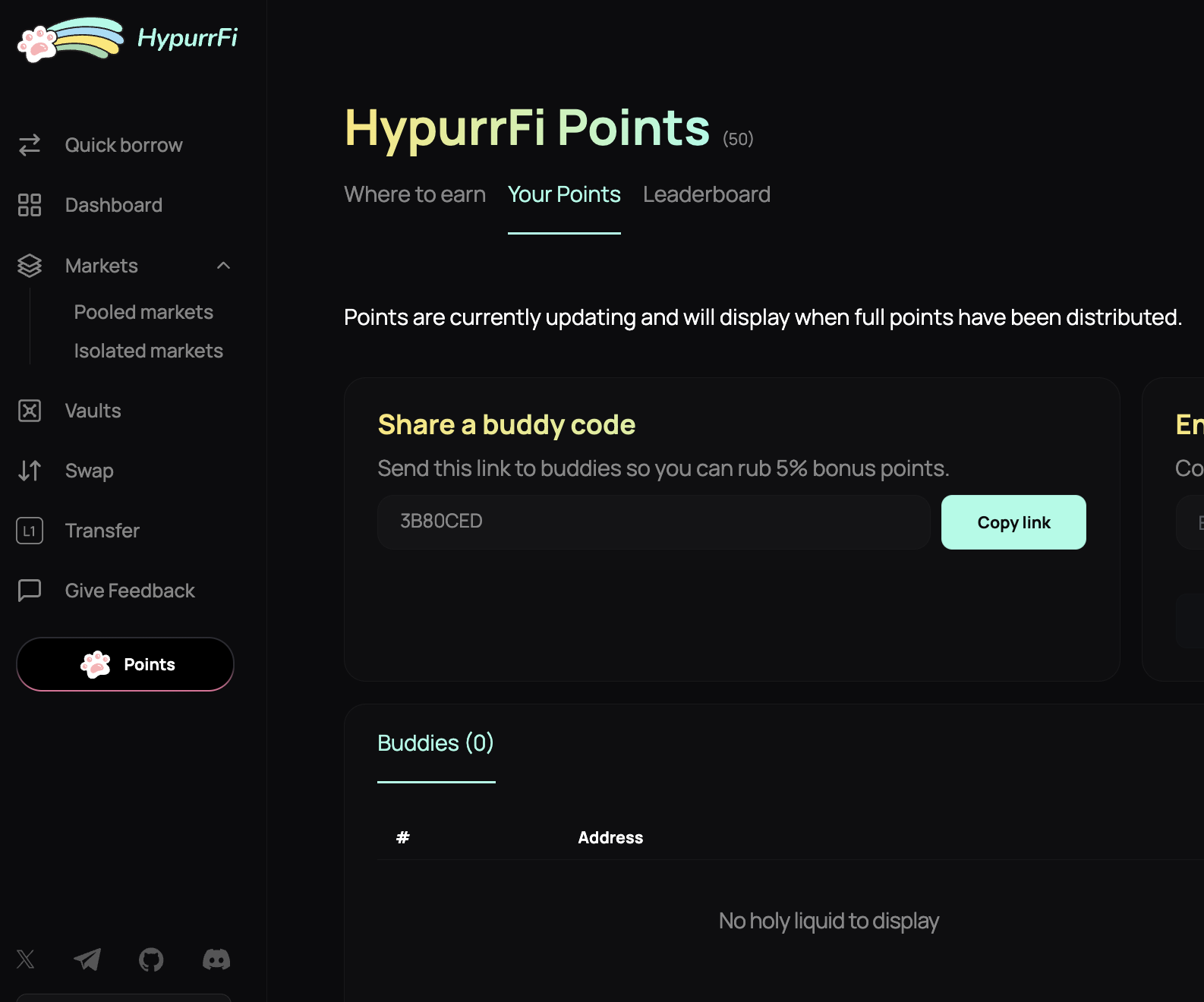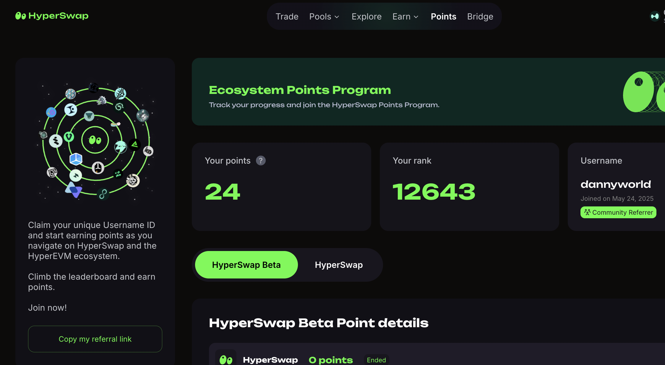 - 포인트는 매번 다릅니다. (현재는 hype, usde, feusd, usdt0 을 주네요)