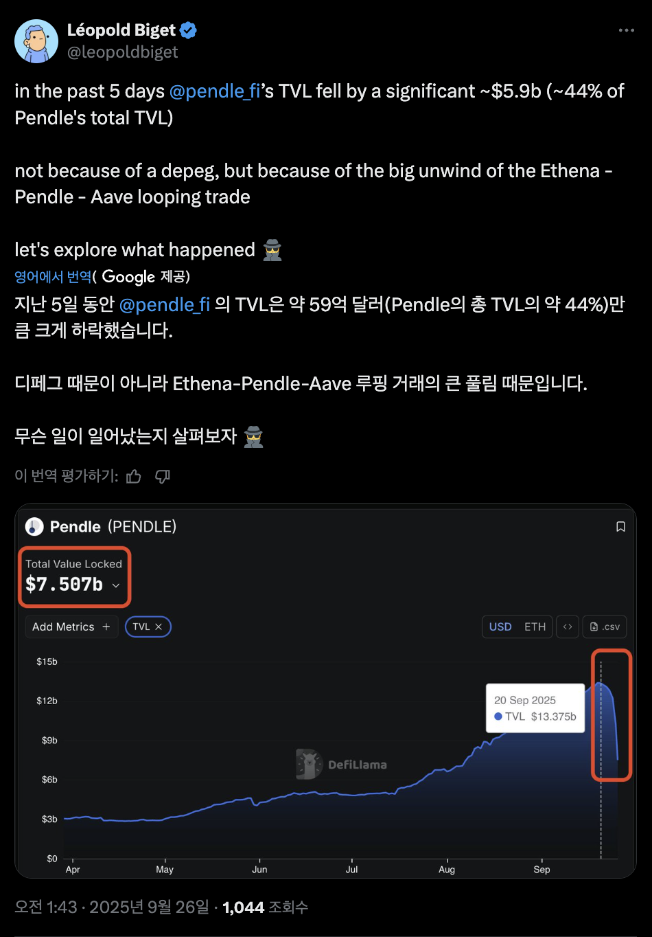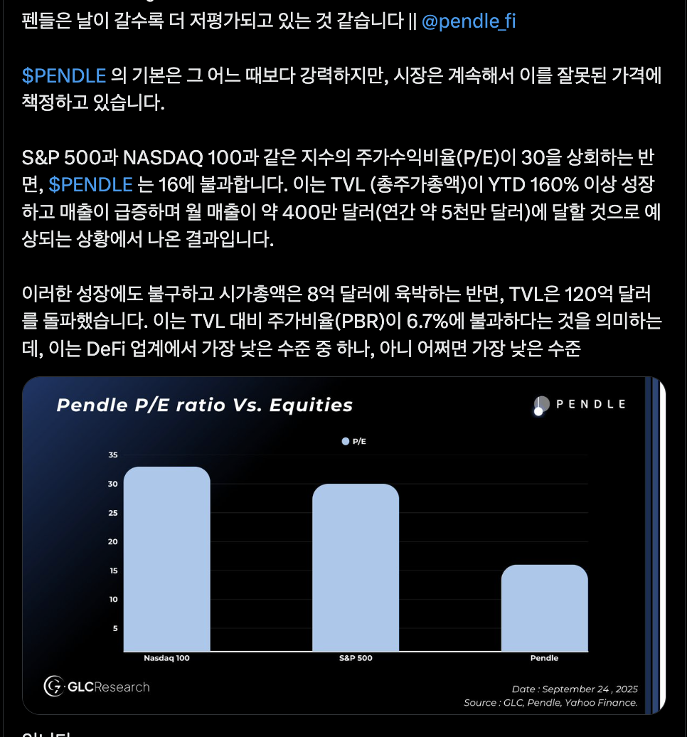 - 전문가 의견: Pendle의 펀더멘털은 여전히 강력하다고 평가 x.com