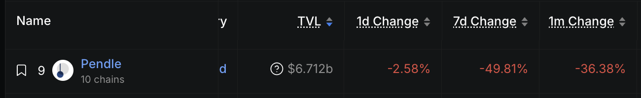 - 시장 조건 변화 및 가격 하락: 시장 상황 변화로 인해 TVL이 50% 가까이 줄었으며, 고래들의 매도와 수익 실현으로 PENDLE 가격이 10% 이상 하락한 점이 간접적으로 영향을 미쳤습니다. 이는 depeg나 해킹 같은 문제가 아닌, 시장 주도적인 요인입니다.