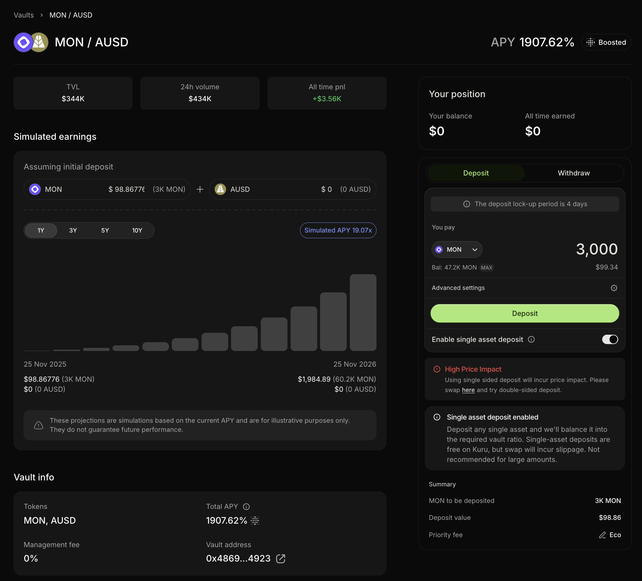 - KURU 유동성 풀에 sMON/MON으로 공급 가능합니다.